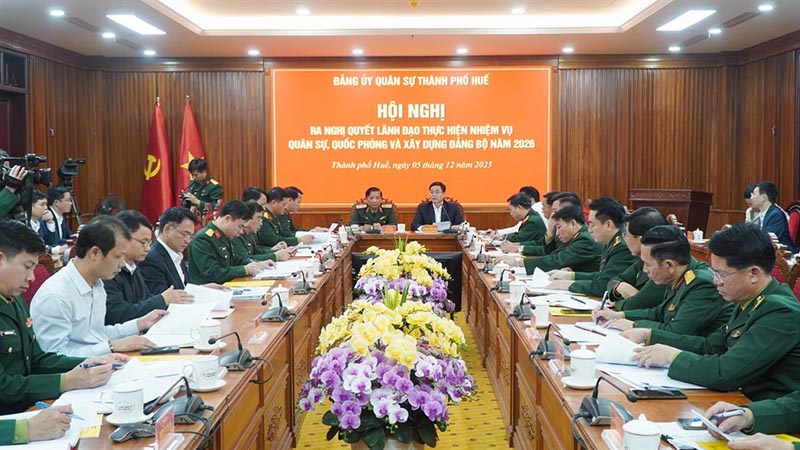 Ngày 5/12, Đảng uỷ Quân sự thành phố Huế tổ chức Hội nghị ra Nghị quyết lãnh đạo thực hiện nhiệm vụ quân sự, quốc phòng và xây dựng Đảng bộ năm 2026. Dự hội nghị về phía Quân khu 4 có Trung tướng Hà Thọ Bình, Phó Bí thư Đảng uỷ, Tư lệnh Quân khu 4; Đại tá Đinh Xuân ...
