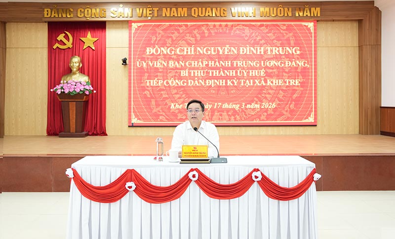 Sáng 17/3, đồng chí Nguyễn Đình Trung, Ủy viên Trung ương Đảng, Bí thư Thành ủy đã chủ trì buổi tiếp công dân định kỳ tại xã Khe Tre. Cùng dự có đồng chí Đặng Ngọc Trân, Ủy viên Thường vụ Thành ủy, Trưởng Ban Nội chính Thành ủy cùng đại diện lãnh ...