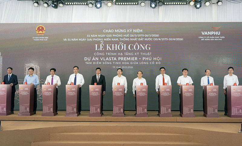 Sáng 29/3, Công ty Cổ phần Phát triển Bất động sản Văn Phú (đơn vị phát triển dự án) và Công ty Cổ phần Union Success Việt Nam (chủ đầu tư) tổ chức Lễ khởi công Dự án Vlasta Premier - Phú Hội (hạng mục hạ tầng kỹ thuật) tại phường Thuận Hóa, Thành phố Huế.