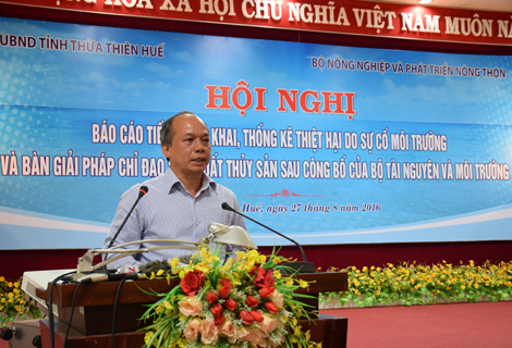 Sáng 27/8, Bộ Nông nghiệp và Phát triển Nông thôn (NN&PTNT) phối hợp với UBND tỉnh Thừa Thiên Huế tổ chức Hội nghị báo cáo tiến độ kê khai, thống kê thiệt hại do sự cố môi trường biển và bàn giải pháp chỉ đạo sản xuất thủy sản sau công bố của ...
