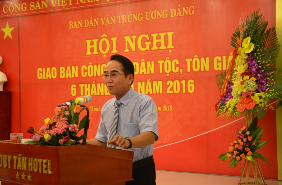 Ngày 28/6, tại thành phố Huế, tỉnh Thừa Thiên Huế, Ban Dân vận Trung ương đã tổ chức Hội nghị giao ban công tác dân tộc, tôn giáo 6 tháng đầu năm 2016.