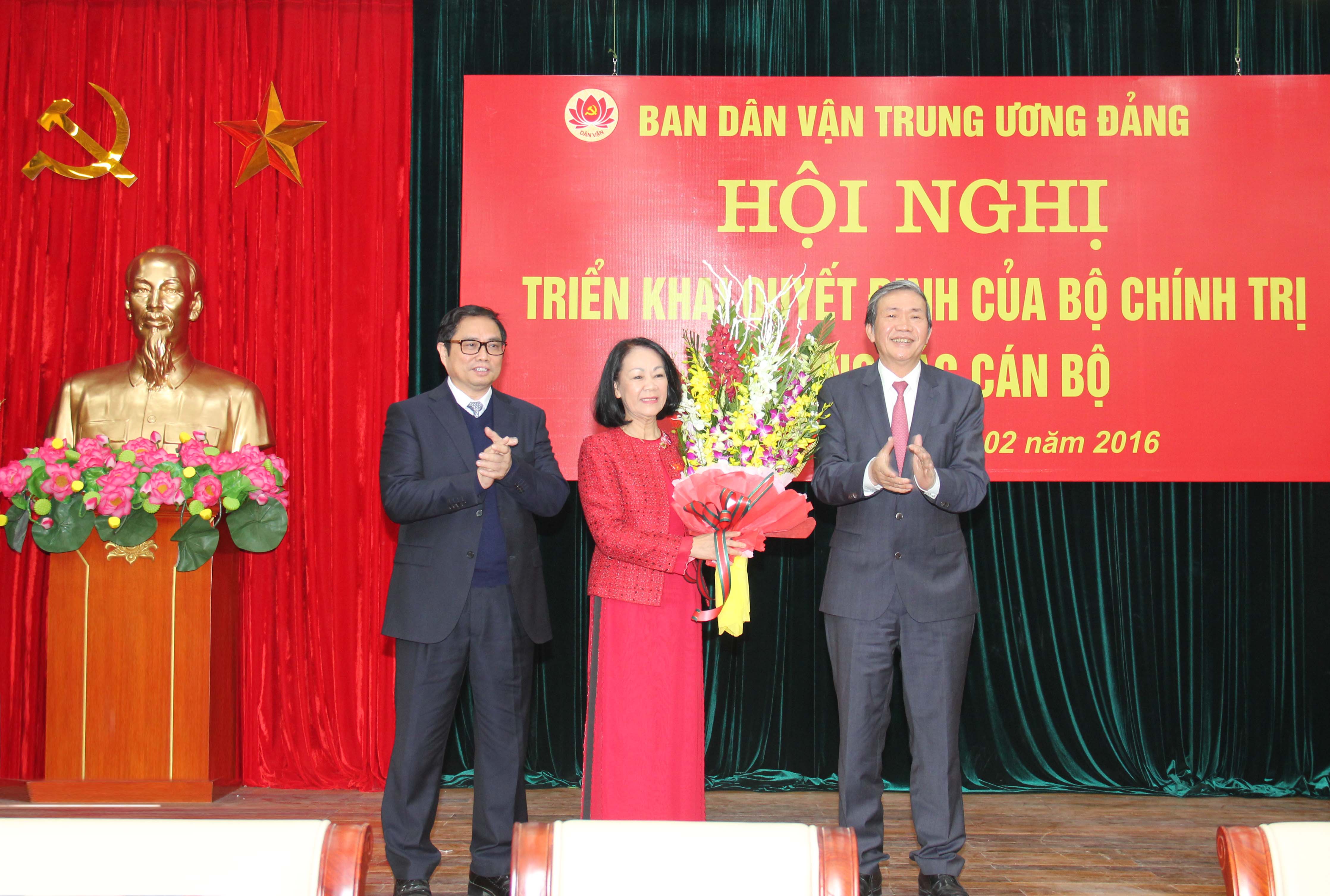 (Danvan.vn) Sáng ngày 17/02, tại Hà Nội, Bộ Chính trị đã chính thức công bố và trao Quyết định phân công đồng chí Trương Thị Mai, Ủy viên Bộ Chính trị, Bí thư Trung ương Đảng, Chủ nhiệm Ủy ban Về các vấn đề xã hội của Quốc hội đảm nhiệm chức vụ Trưởng Ban Dân vận TW.