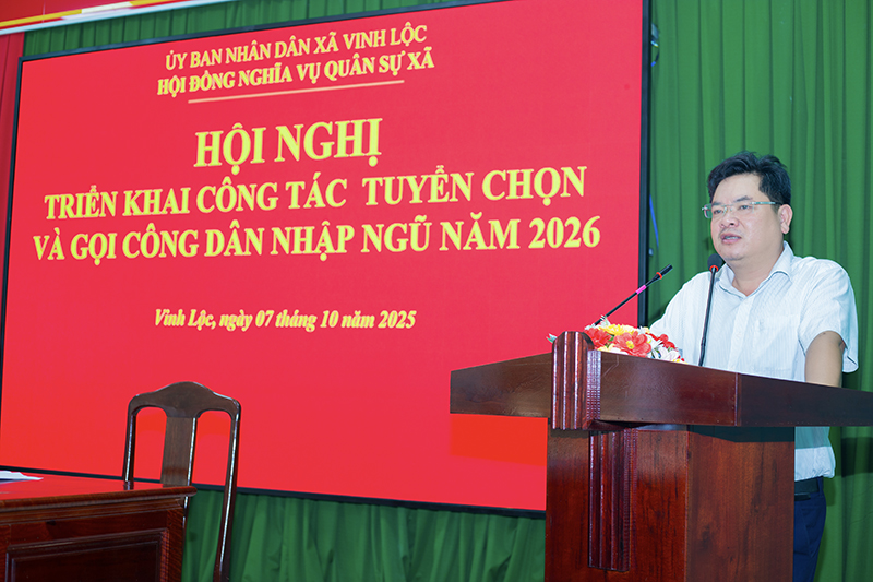 Ngày 07/10, tại Hội trường UBND xã, Hội đồng Nghĩa vụ quân sự xã Vinh Lộc tổ chức Hội nghị triển khai công tác tuyển chọn và gọi công dân nhập ngũ năm 2026.