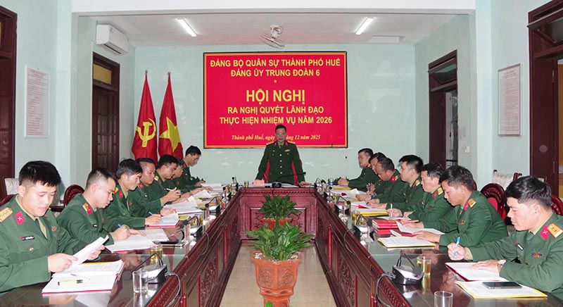 Ngày 02/12, Đảng ủy Quân sự thành phố Huế tổ chức Hội nghị ra nghị quyết lãnh đạo thực hiện nhiệm vụ quân sự, quốc phòng và xây dựng Đảng bộ năm 2026 (phiên nội bộ). Đại tá Trương Viết Hải, Thành ủy viên, Phó Bí thư Thường trực Đảng ủy, ...