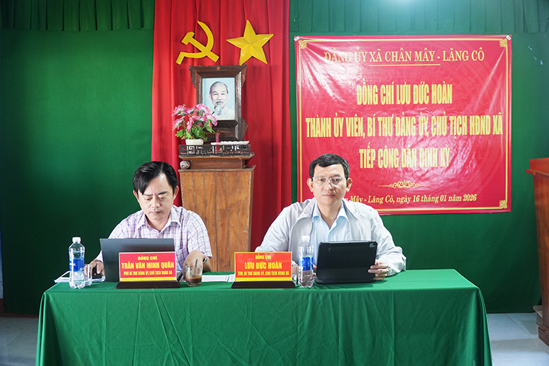 Ngày 16/01, Thành uỷ viên, Bí thư Đảng uỷ Lưu Đức Hoàn cùng Chủ tịch UBND xã Trần Văn Minh Quân đã có buổi tiếp công dân định kỳ tại thôn Cảnh Dương, xã Chân Mây - Lăng Cô.