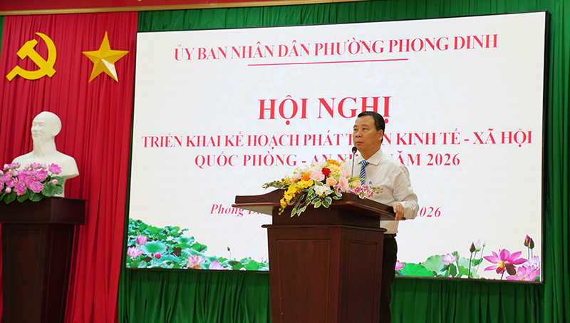 Ngày 15/01, Ủy ban nhân dân phường Phong Dinh tổ chức Hội nghị triển khai nhiệm vụ phát triển kinh tế - xã hội, quốc phòng - an ninh năm 2026. Dự hội nghị có các đồng chí Hoàng Văn Thái, Bí thư Đảng ủy, Chủ tịch HĐND phường, Nguyễn Quốc Tuấn, Phó Bí ...