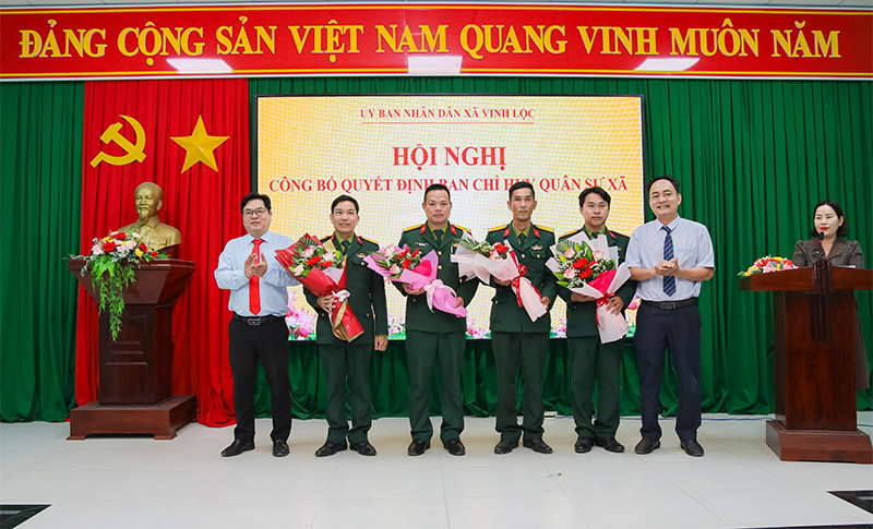 Vừa qua, UBND xã Vinh Lộc đã long trọng tổ chức Hội nghị công bố các quyết định về công tác cán bộ đối với Ban Chỉ huy Quân sự (CHQS) xã. Đây là nội dung quan trọng nhằm kiện toàn tổ chức bộ máy lãnh đạo quân sự địa phương, đáp ứng yêu cầu, nhiệm vụ quốc phòng - an ninh trong tình hình mới.