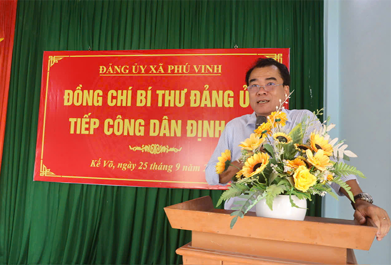 Ngày 25/9, đồng chí Bí thư Đảng ủy, Chủ tịch HĐND xã Phú Vang - Đặng Hồng Sơn đã có buổi tiếp công dân định kỳ tại nhà văn hóa Thôn Trừng Hà. Cùng tham dự có đồng chí La Đình Tân– UVTV Đảng ủy, Phó Chủ tịch UBND xã; lãnh đạo Văn phòng Đảng ủy; đại diện lãnh đạo một số cơ quan, ban ngành liên quan và đông đảo người dân trên địa bàn.