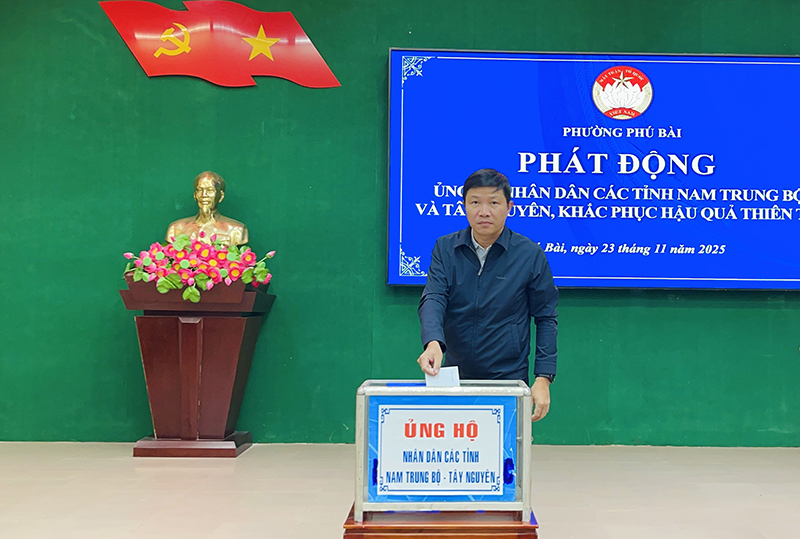 Ngày 23/11, Ủy ban MTTQ Việt Nam phường Phú Bài tổ chức phát động đợt quyên góp ủng hộ nhân dân các tỉnh Nam Trung Bộ và Tây Nguyên đang gặp khó khăn do ảnh hưởng của thiên tai. Tham dự lễ phát động có đồng chí Lê Văn Cường - Thành uỷ viên, Bí thư ...