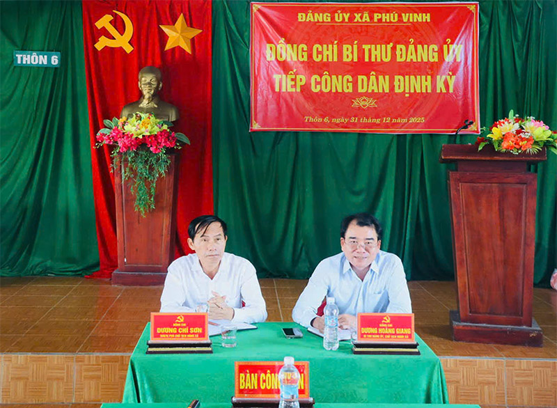 Thực hiện Kế hoạch tiếp công dân định kỳ và đối thoại trực tiếp với công dân 6 tháng cuối năm 2025, sáng 31/12, đồng chí Đặng Hồng Sơn - TUV, Bí thư Đảng ủy, Chủ tịch HĐND xã Phú Vang đã có buổi tiếp công dân định kỳ tại phòng tiếp công dân ...