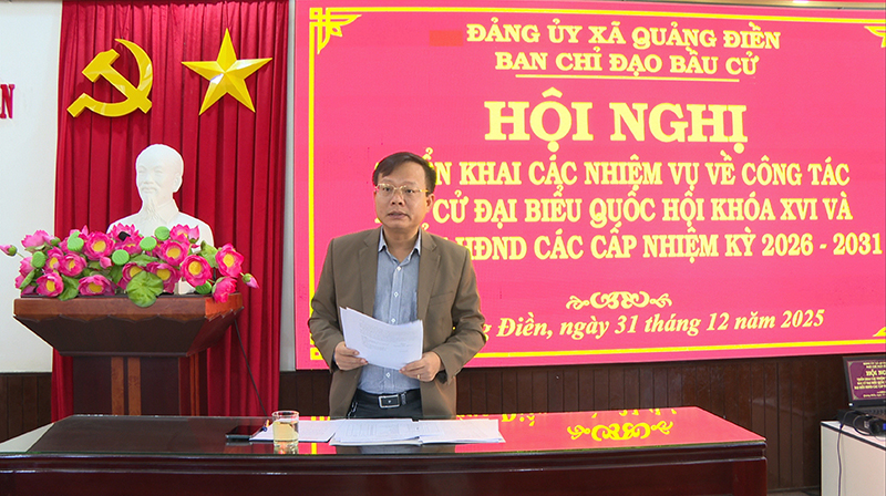 Sáng 31/12, Ban chỉ đạo bầu cử xã đã tổ chức Hội nghị triển khai các nhiệm vụ về công tác bầu cử đại biểu Quốc Hội khóa XVI và đại biểu Hội đồng nhân dân các cấp, nhiệm kỳ 2026 - 2031. Đồng chí Lê Ngọc Bảo - Bí thư Đảng uỷ, Chủ tịch HĐND ...