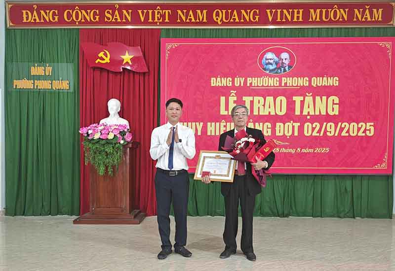 Sáng ngày 28/8, Đảng uỷ phường Phong Quảng tổ chức Lễ trao tặng Huy hiệu Đảng đợt 2/9/2025. Tham dự buổi lễ có đồng chí Nguyễn Tuấn Anh – Bí thư Đảng uỷ, Chủ tịch HĐND phường; đồng chí Trần Văn Hùng – Phó Bí thư Thường trực Đảng ủy; đồng ...