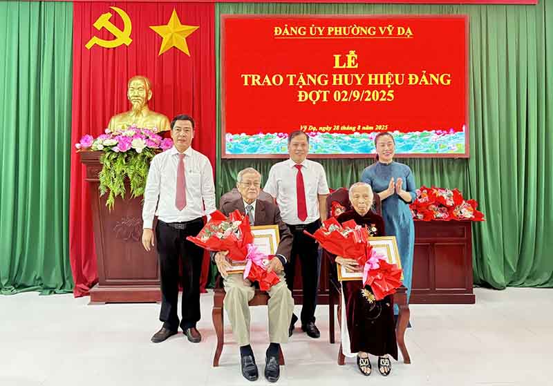 Nhân kỷ niệm 80 năm Quốc khánh nước Cộng hoà xã hội chủ nghĩa Việt Nam (02/9/1945-02/9/2025), ngày 28/8, Ban Thường vụ Đảng uỷ long trọng tổ chức Lễ trao huy hiệu Đảng cho 24 đảng viên thuộc Đảng bộ phường Vỹ Dạ.