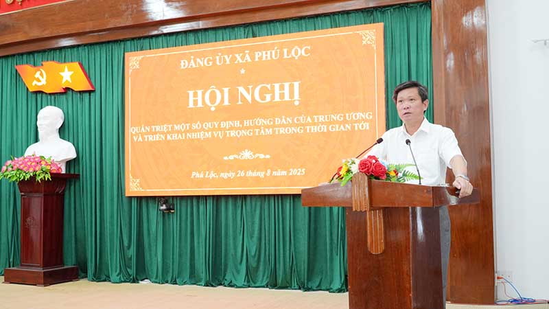 Sáng 26/8, Đảng ủy xã Phú Lộc tổ chức Hội nghị quán triệt một số Quy định, Hướng dẫn của Trung ương và triển khai nhiệm vụ trọng tâm thời gian tới. Tham dự có đồng chí Lê Văn Thông – Bí thư Đảng ủy, Chủ tịch HĐND xã; đồng chí Nguyễn Văn ...