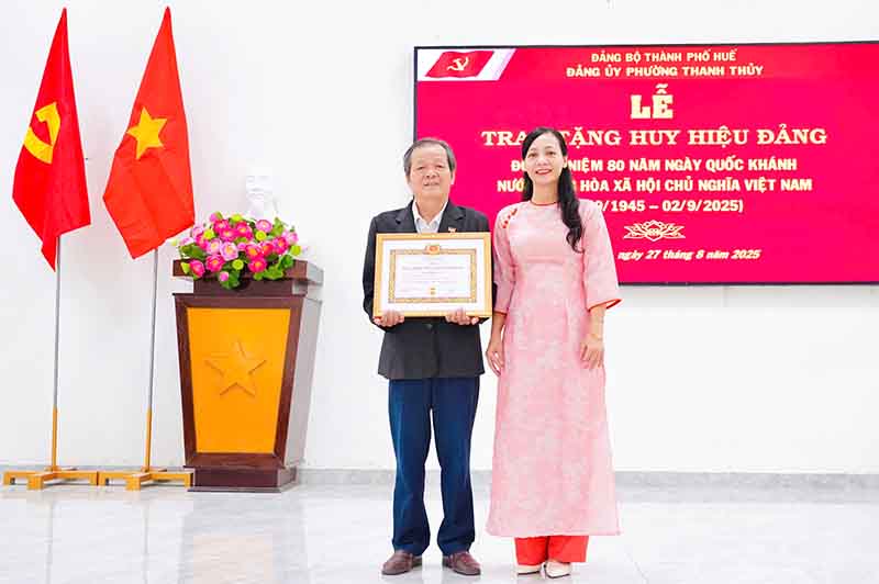 Nhân kỷ niệm 80 năm Cách mạng Tháng Tám và Quốc khánh 2/9, chiều 27/8, Đảng bộ phường Thanh Thủy tổ chức lễ trao tặng Huy hiệu Đảng cho đảng viên thuộc các tổ chức đảng trực thuộc.