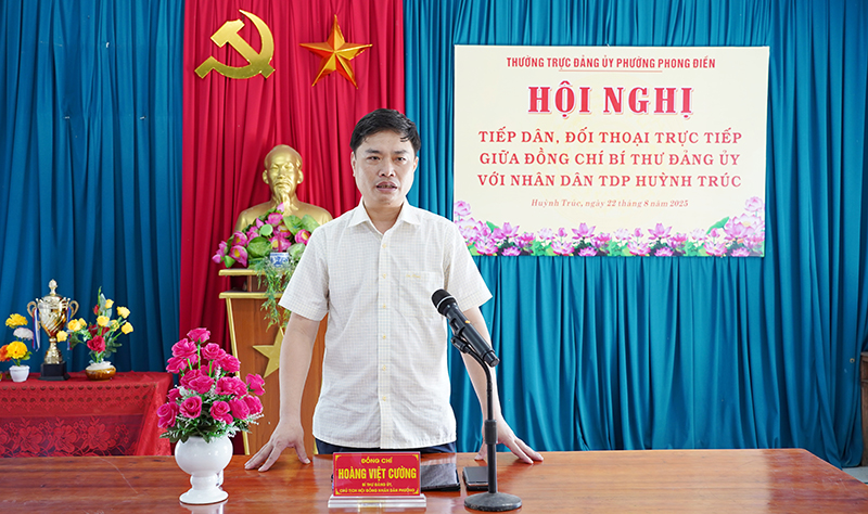 Ngày 22/8, đồng chí Hoàng Việt Cường, Bí thư Đảng uỷ, Chủ tịch HĐND phường Phong Điền đã có buổi tiếp dân, đối thoại trực tiếp với Nhân dân tổ dân phố Huỳnh Trúc. Cùng dự buổi tiếp có lãnh đạo Ban Xây dựng Đảng, UBKT Đảng ủy, UBMTTQVN phường; ...