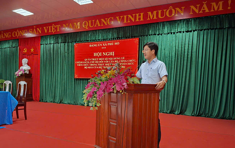 Vừa qua, Ban Thường vụ Đảng ủy xã tổ chức Hội nghị quán triệt một số nội dung có liên quan đến chế độ, chính sách đối với cán bộ, công chức, viên chức thực hiện sắp xếp tổ chức bộ máy của hệ thống chính trị.