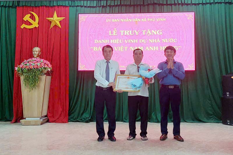 Ngày1 5/8, UBND xã Phú Vinh long trọng tổ chức Lễ truy tặng danh hiệu vinh dự Nhà nước “Bà mẹ Việt Nam anh hùng” cho Mẹ Tô Thị Hạnh. Tham dự Lễ có đồng chí Dương Hoàng Giang, Bí thư Đảng ủy, Chủ tịch HĐND xã; đồng chí Nguyễn Văn Thành – UVTV, Phó ...