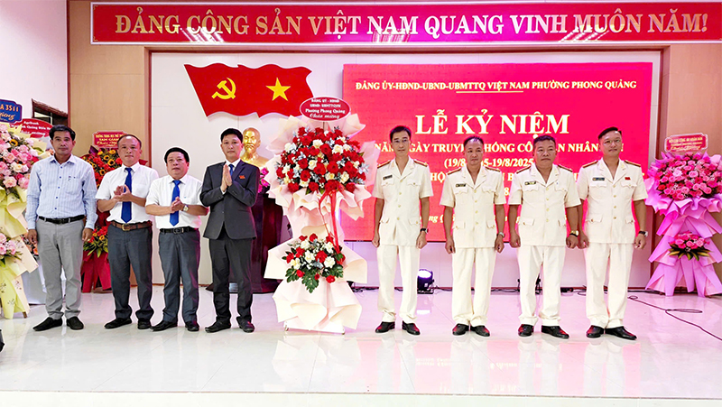 Ngày 18/8, Đảng ủy, HĐND, UBND, Ủy ban MTTQ Việt Nam phường Phong Quảng tổ chức Lễ kỷ niệm 80 năm Ngày truyền thống Công an nhân dân (19/8/1945 - 19/8/2025) và 20 năm Ngày hội Toàn dân bảo vệ an ninh Tổ quốc (19/8/2005 - 19/8/2025).