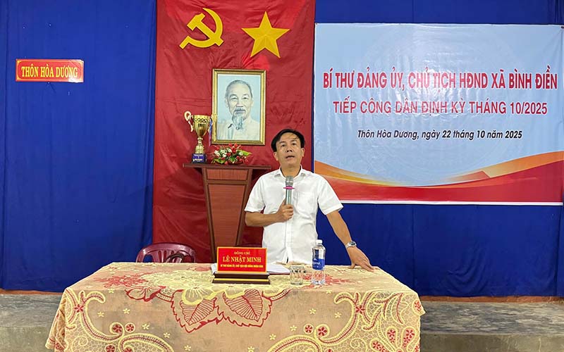 Thực hiện quy chế tiếp công dân định kỳ của người đứng đầu cấp ủy, ngày 22/10, tại Nhà văn hoá thôn Hòa Dương, đồng chí Lê Nhật Minh – Bí thư Đảng uỷ, Chủ tịch HĐND xã Bình Điền đã chủ trì buổi tiếp công dân định kỳ của hai thôn: Hoà ...