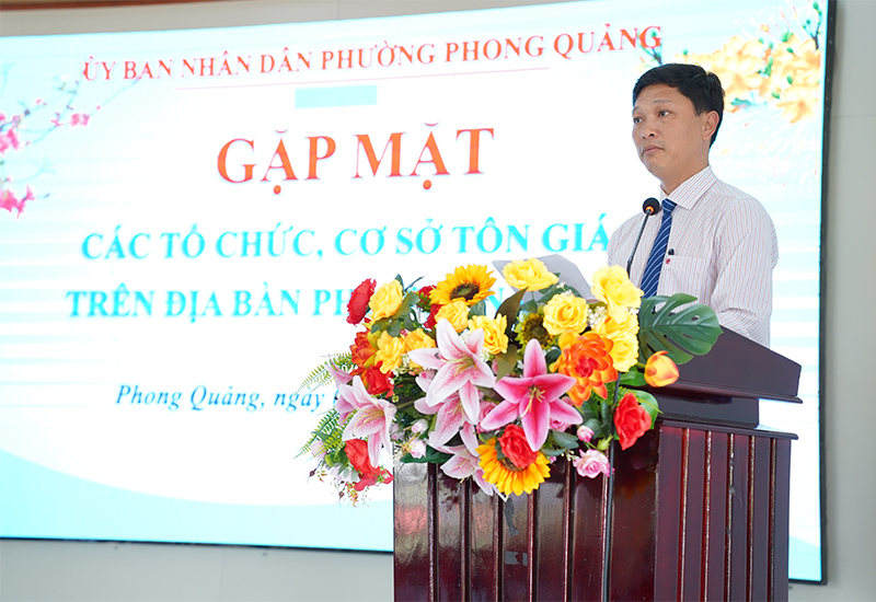 Ngày 05/02, phường Phong Quảng tổ chức buổi gặp mặt các tổ chức, cơ sở tôn giáo trên địa bàn phường. Tham dự buổi gặp mặt có đồng chí Nguyễn Tuấn Anh – Bí thư Đảng ủy, Chủ tịch HĐND phường; đồng chí Trần Văn Hùng – Phó Bí thư Thường trực Đảng ủy; đồng chí Hoàng Văn Bình – Phó Bí thư Đảng ủy, Chủ tịch UBND phường; đồng chí Đinh Văn Thuận – Ủy viên Ban Thường vụ Đảng ủy, Chủ tịch UBMTTQ Việt Nam phường, ...