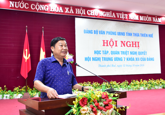 Chiều ngày 12/10, Đảng bộ Văn phòng UBND tỉnh tổ chức Hội nghị triển khai học tập, quán triệt Nghị quyết Hội nghị Trung ương 7 khóa XII của Đảng đến toàn thể đảng viên, CBCNVC cơ quan.