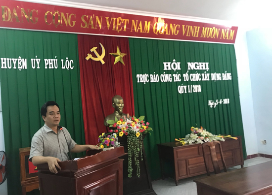 Ngày 05/4/2018, Huyện ủy Phú Lộc tổ chức hội nghị trực báo công tác tổ chức xây dựng Đảng quý I năm 2018. Đồng chí Nguyễn Chí Quang - Tỉnh ủy viên, Bí thư Huyện ủy, Chủ tịch HĐND huyện chủ trì hội nghị.