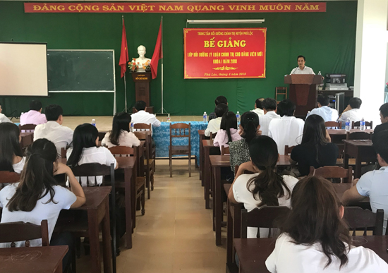 Sáng 04/4/2018, Trung tâm Bồi dưỡng chính trị huyện Phú Lộc tổ chức lễ bế giảng lớp bồi dưỡng lý luận chính trị cho đảng viên mới khóa I năm 2018. Đồng chí Nguyễn Chí Quang - TUV, Bí thư Huyện ủy, Chủ tịch HĐND huyện và đại diện lãnh đạo các ban ...