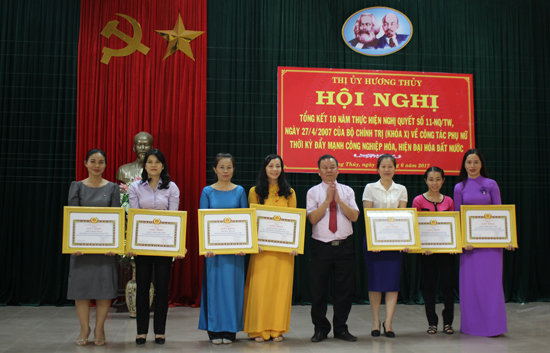 Sáng ngày 27/6/2017, Ban Thường vụ Thị ủy Hương Thủy tổ chức Hội nghị tổng kết 10 năm thực hiện Nghị quyết 11-NQ/TW, ngày 27/4/2007 của Bộ Chính trị (khóa X) về “công tác phụ nữ thời kỳ đẩy mạnh công nghiệp hóa, hiện đại hóa đất nước”. Tham ...