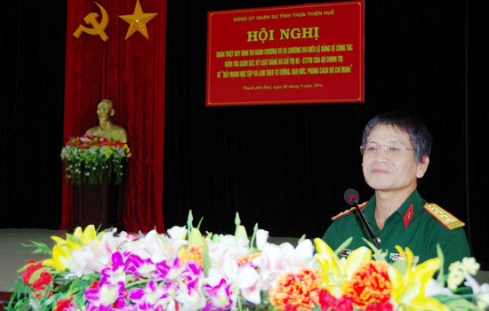 Chiều ngày 8/9, Đảng ủy Quân sự tỉnh Thừa Thiên Huế tổ chức Hội nghị quán triệt Quy định thi hành chương VII và chương VIII Điều lệ đảng về công tác kiểm tra, giám sát, kỷ luật Đảng; Chỉ thị 05-CT/TW của Bộ Chính trị về “Đẩy mạnh học tập ...