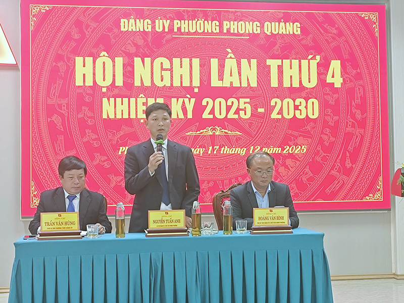 Ngày 17/12, Ban Chấp hành Đảng bộ phường Phong Quảng khóa I, nhiệm kỳ 2025 – 2030 tổ chức Hội nghị lần thứ tư nhằm thảo luận, cho ý kiến và quyết nghị nhiều nội dung quan trọng liên quan đến phương hướng lãnh đạo, chỉ đạo thực hiện nhiệm vụ ...