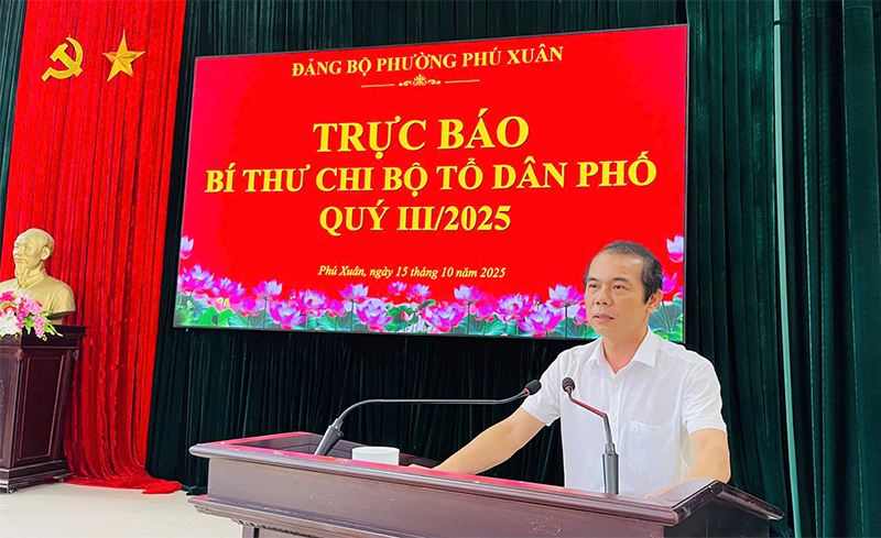 Vừa qua, Đảng ủy phường Phú Xuân tổ chức Hội nghị trực báo Bí thư các chi bộ tổ dân phố. Tham dự Hội nghị có đồng chí Võ Lê Nhật - Thành ủy viên, Bí thư Đảng ủy, Chủ tịch HĐND phường; đồng chí Đặng Thị Ngọc Lan - Phó Bí thư Thường trực Đảng ủy phường; cùng các đồng chí trong Ban Thường vụ, Ban Chấp hành Đảng bộ phường và Bí thư các chi bộ tổ dân phố.