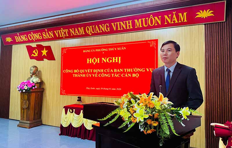 Ngày 29/01, Ban Thường vụ Đảng ủy xã Phú Hồ tổ chức Hội nghị công bố Quyết định của Ban Thường vụ Thành ủy Huế về việc chỉ định bổ sung Ủy viên Ban Chấp hành Đảng bộ xã Phú Hồ khóa I, nhiệm kỳ 2025 - 2030. Tham dự Hội nghị có đồng chí ...