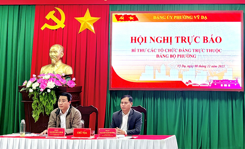 Ngày 08/12, Đảng ủy phường Vỹ Dạ tổ chức Hội nghị trực báo Bí thư các tổ chức đảng thuộc Đảng bộ phường nhằm đánh giá tình hình thực hiện nhiệm vụ từ tháng 9 đến tháng 11/2025; đồng thời thảo luận, đề xuất các giải pháp triển khai nhiệm ...