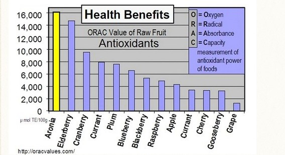 Theo các chuyên gia từ Mỹ, kết hợp nhiều loại trái cây trong chế độ ăn uống đem lại nhiều lợi ích cho sức khỏe, nhất là quả chứa hoạt chất chống oxy hóa cao như việt quất, nam việt quất... Trong đó tốt nhất là Aronia (còn gọi là Chokeberry - anh đào ...