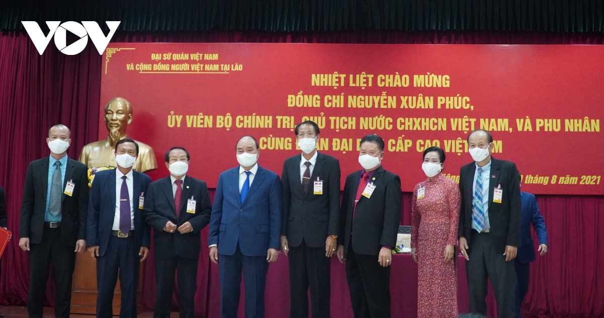 Chủ tịch nước Nguyễn Xuân Phúc và Phu nhân đã tới thăm hỏi, nói chuyện với nhân viên Đại sứ quán Việt Nam tại Lào và đại diện cộng đồng người Việt Nam, doanh nghiệp, lưu học sinh Việt Nam đang đầu tư, học tập tại Lào.