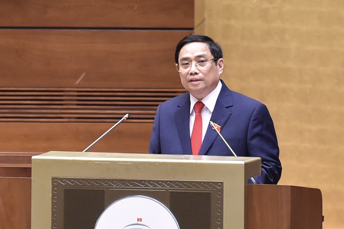 Sau khi được bầu giữ chức vụ Thủ tướng Chính phủ nhiệm kỳ mới, ông Phạm Minh Chính thực hiện nghi lễ tuyên thệ nhậm chức trước Quốc hội.