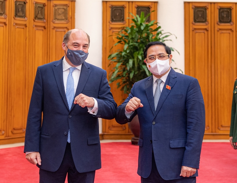 Thủ tướng Phạm Minh Chính đánh giá cao những bước phát triển mạnh mẽ của quan hệ Việt Nam - Anh trên các lĩnh vực như chính trị, kinh tế, quốc phòng, an ninh, phát triển bền vững. Thủ tướng đề nghị phía Anh thúc đẩy triển khai hiệu quả Hiệp định thương mại tự do song phương (UKVFTA), khuyến khích các doanh nghiệp Anh đầu tư vào Việt Nam.