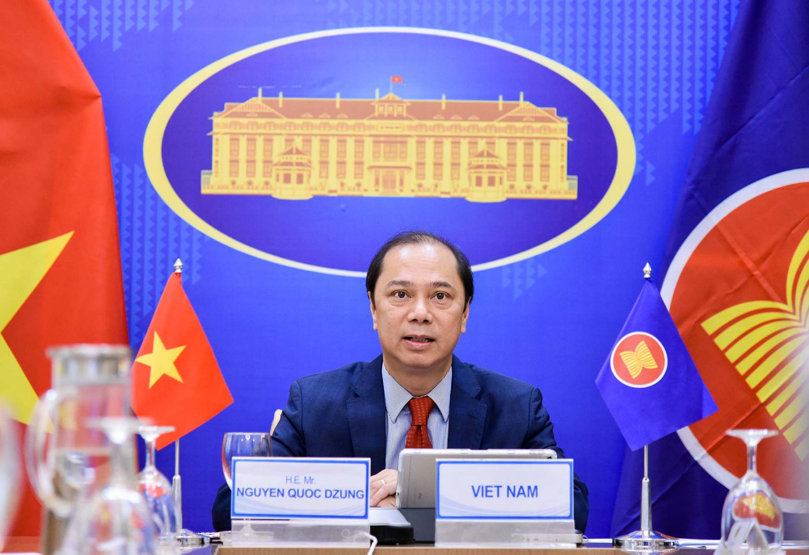 Sáng ngày 29/6, Thứ trưởng Bộ Ngoại giao Nguyễn Quốc Dũng, Trưởng SOM ASEAN/ARF Việt Nam đã dẫn đầu đoàn Việt Nam dự Hội nghị Quan chức cao cấp Diễn đàn khu vực ASEAN (SOM ARF) theo hình thức trực tuyến.