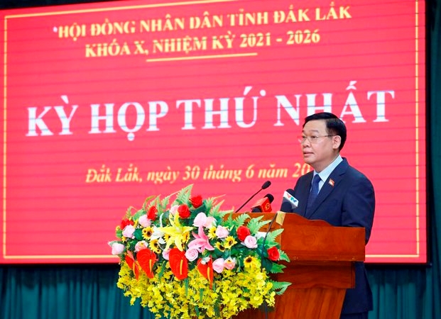 Chủ tịch Quốc hội Vương Đình Huệ tin tưởng, HĐND tỉnh Đắk Lắk sẽ tiếp tục đổi mới mạnh mẽ hơn nữa về tổ chức và hoạt động, hoàn thành xuất sắc nhiệm vụ của cơ quan quyền lực nhà nước tại địa phương, tiếp tục đưa Đắk Lắk trở thành một trong những cực tăng trưởng kinh tế, có sức hấp dẫn, lan tỏa trong vùng kinh tế khu vực Tây Nguyên.