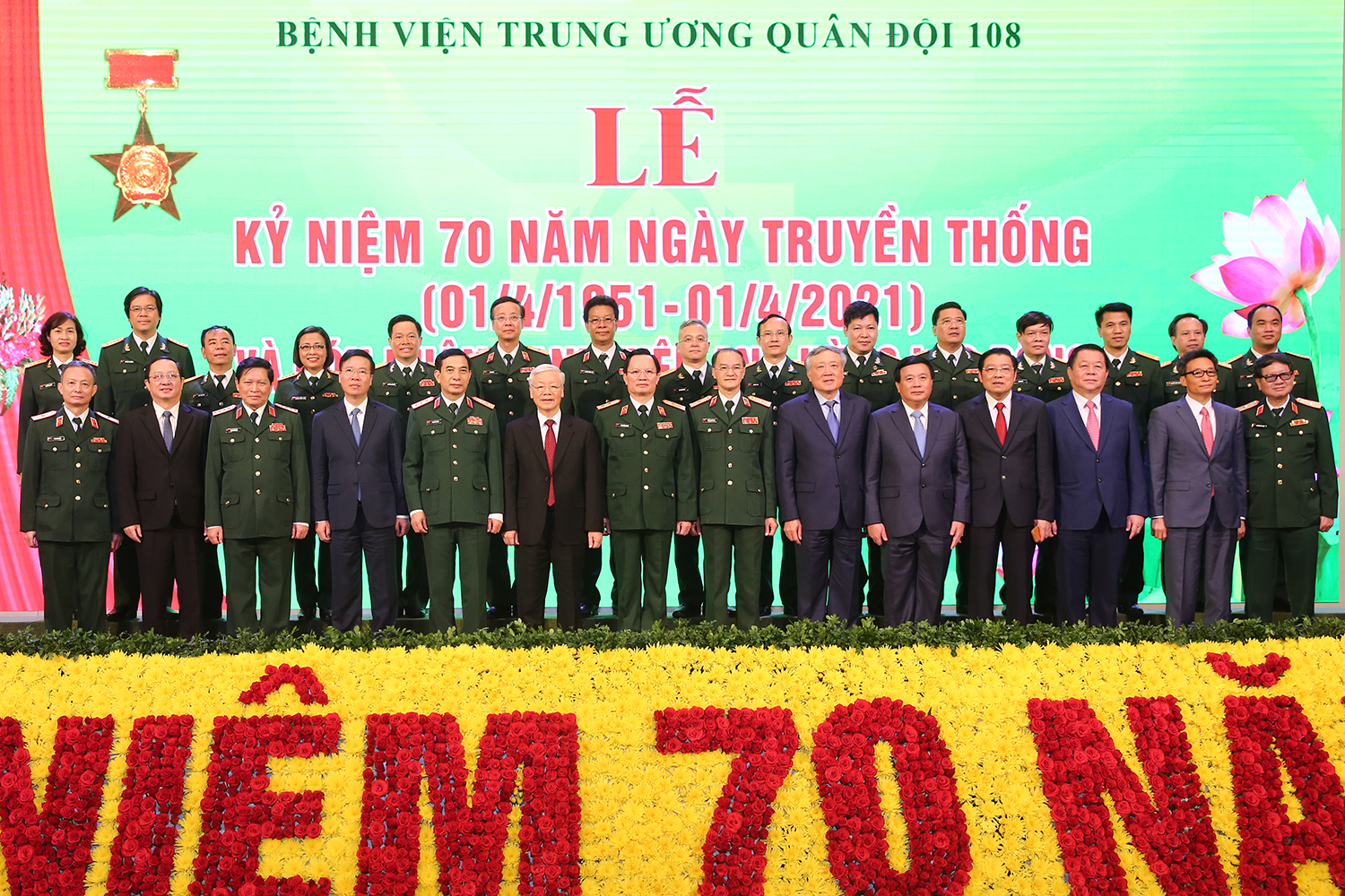 Sáng 19/4, Tổng Bí thư, Bí thư Quân ủy Trung ương Nguyễn Phú Trọng đã tới dự lễ kỷ niệm 70 năm Ngày Truyền thống (1/4/1951-1/4/2021) và đón nhận danh hiệu Anh hùng Lao động của Bệnh viện Trung ương Quân đội 108.