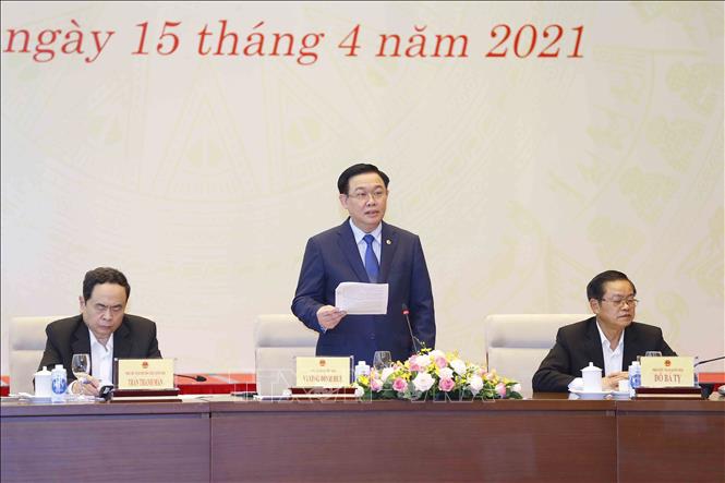 Chiều 15/4, tại Nhà Quốc hội, Chủ tịch Quốc hội Vương Đình Huệ chủ trì Hội nghị của Ủy ban Thường vụ Quốc hội (UBTVQH) với các đại biểu chuyên trách ở Trung ương.