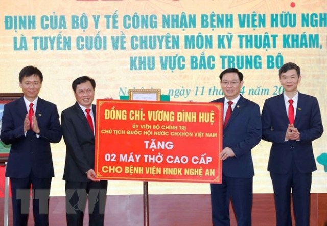 Sáng 11/4, tại tỉnh Nghệ An, Ủy viên Bộ Chính trị, Chủ tịch Quốc hội Vương Đình Huệ và Đoàn công tác đã dự Lễ đón nhận Quyết định của Bộ Y tế công nhận Bệnh viện Hữu nghị Đa khoa Nghệ An là tuyến cuối về chuyên môn kỹ thuật khám, chữa bệnh khu vực Bắc Trung Bộ.