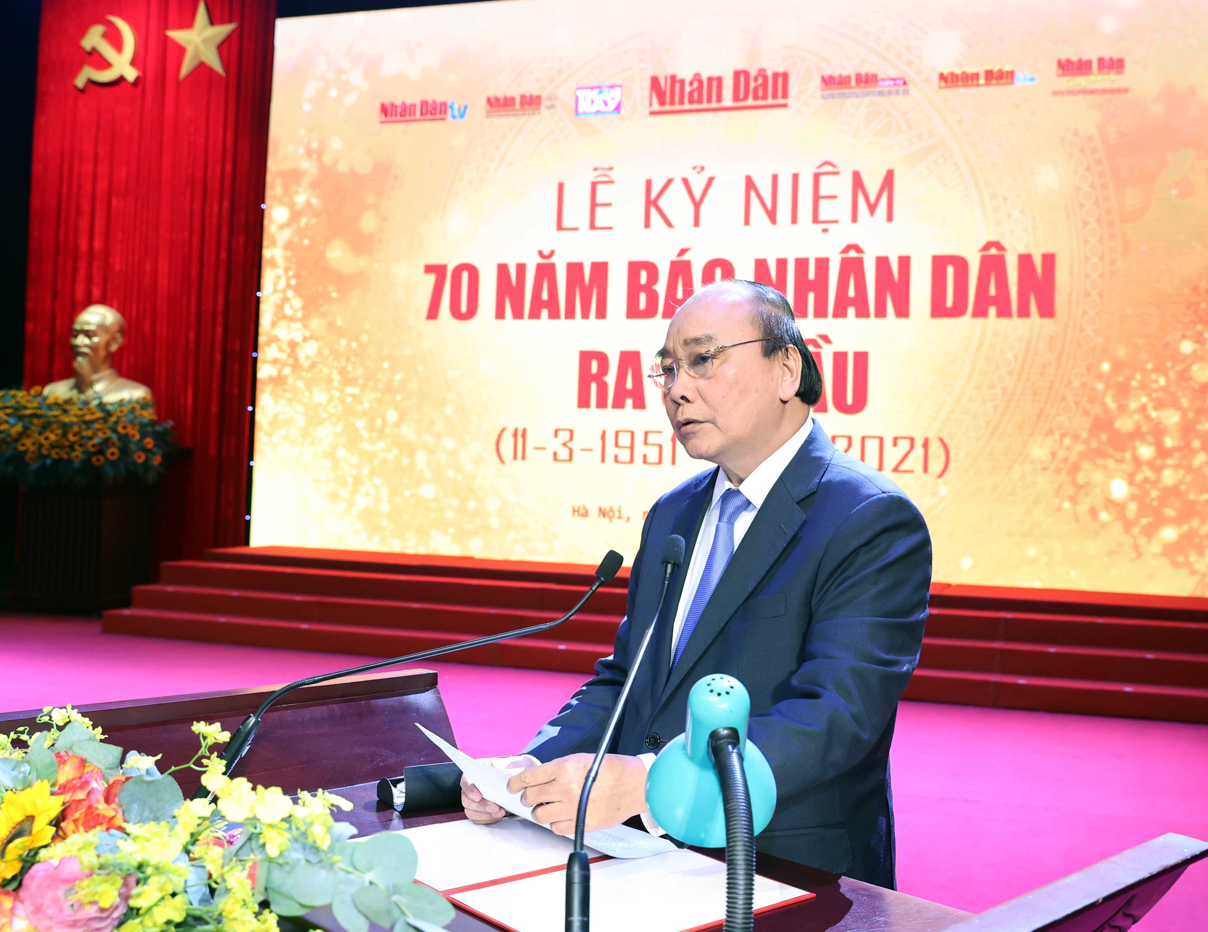 Sáng nay, 11/3, tại Hà Nội, dự kỷ niệm 70 năm Báo Nhân dân ra số đầu (11/3/1951-11/3/2021), Thủ tướng bày tỏ mong muốn, lực lượng những người làm Báo Nhân dân ra sức phấn đấu rèn luyện bản lĩnh, nghiệp vụ, đạo đức, lao động sáng tạo, cập nhật ...