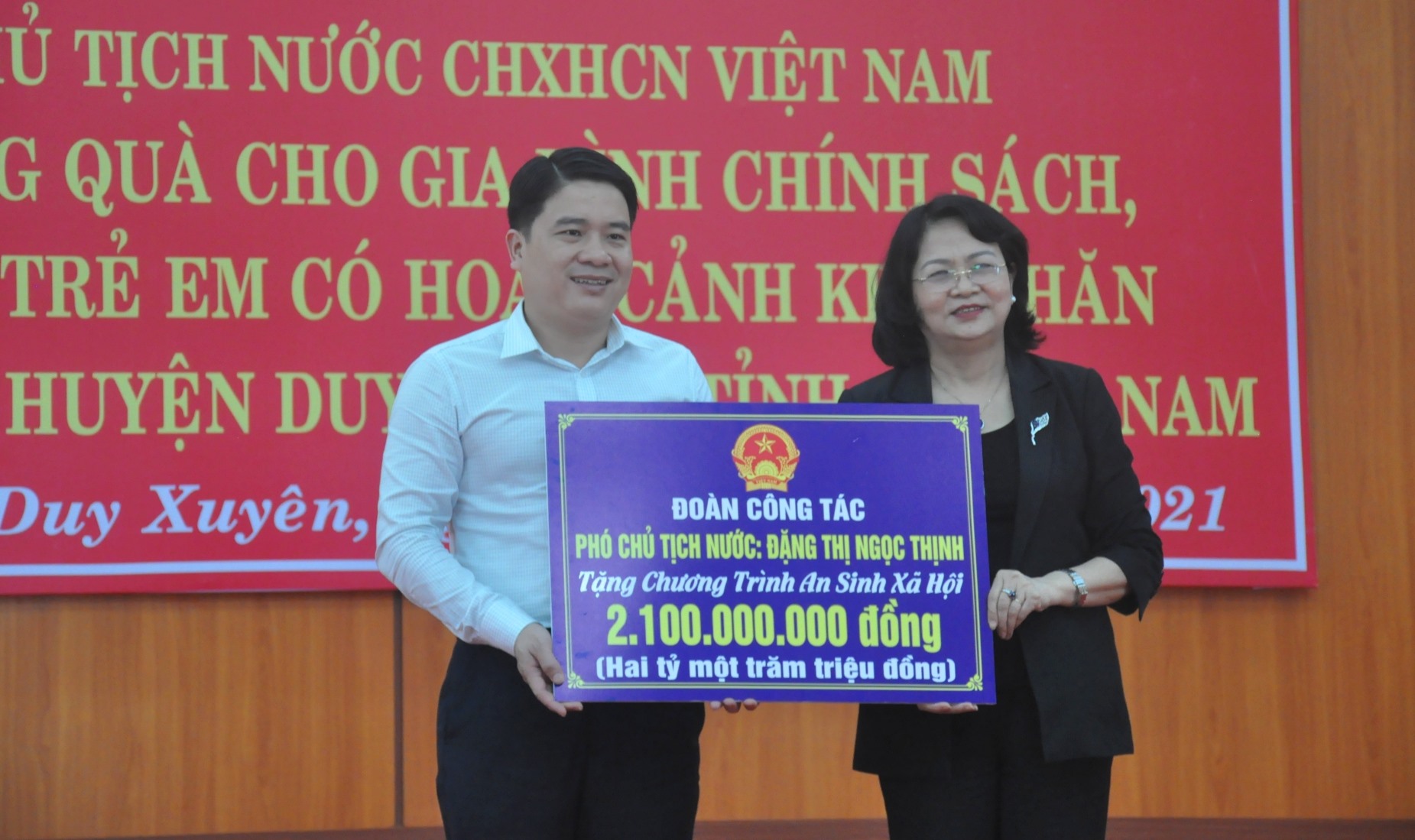 Ngày 9/3, Phó Chủ tịch nước Đặng Thị Ngọc Thịnh cùng đoàn công tác Trung ương đến thăm, tặng quà hộ nghèo, hộ chính sách và học sinh hiếu học của 2 huyện Hiệp Đức và Duy Xuyên (tỉnh Quảng Nam).