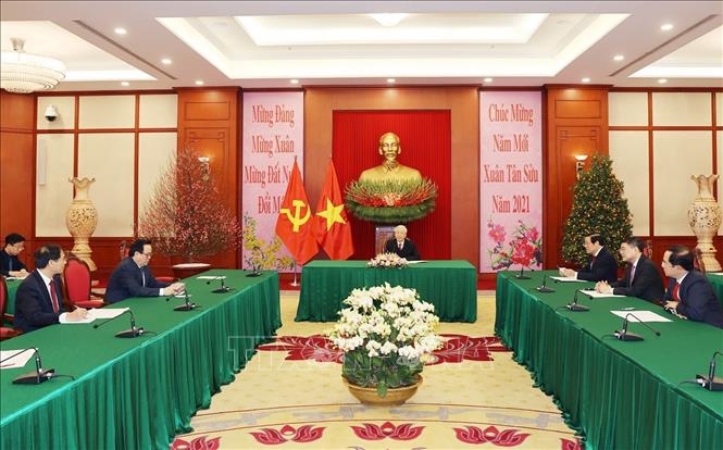 Sáng 9/2, tại Phủ Chủ tịch, lãnh đạo Đảng, Nhà nước tổ chức gặp mặt mừng Đảng, mừng Xuân, mừng đất nước đổi mới, chúc mừng những thành tựu toàn Đảng, toàn dân và toàn quân ta đạt được trong năm 2020; gửi tới đồng bào, đồng chí, chiến ...
