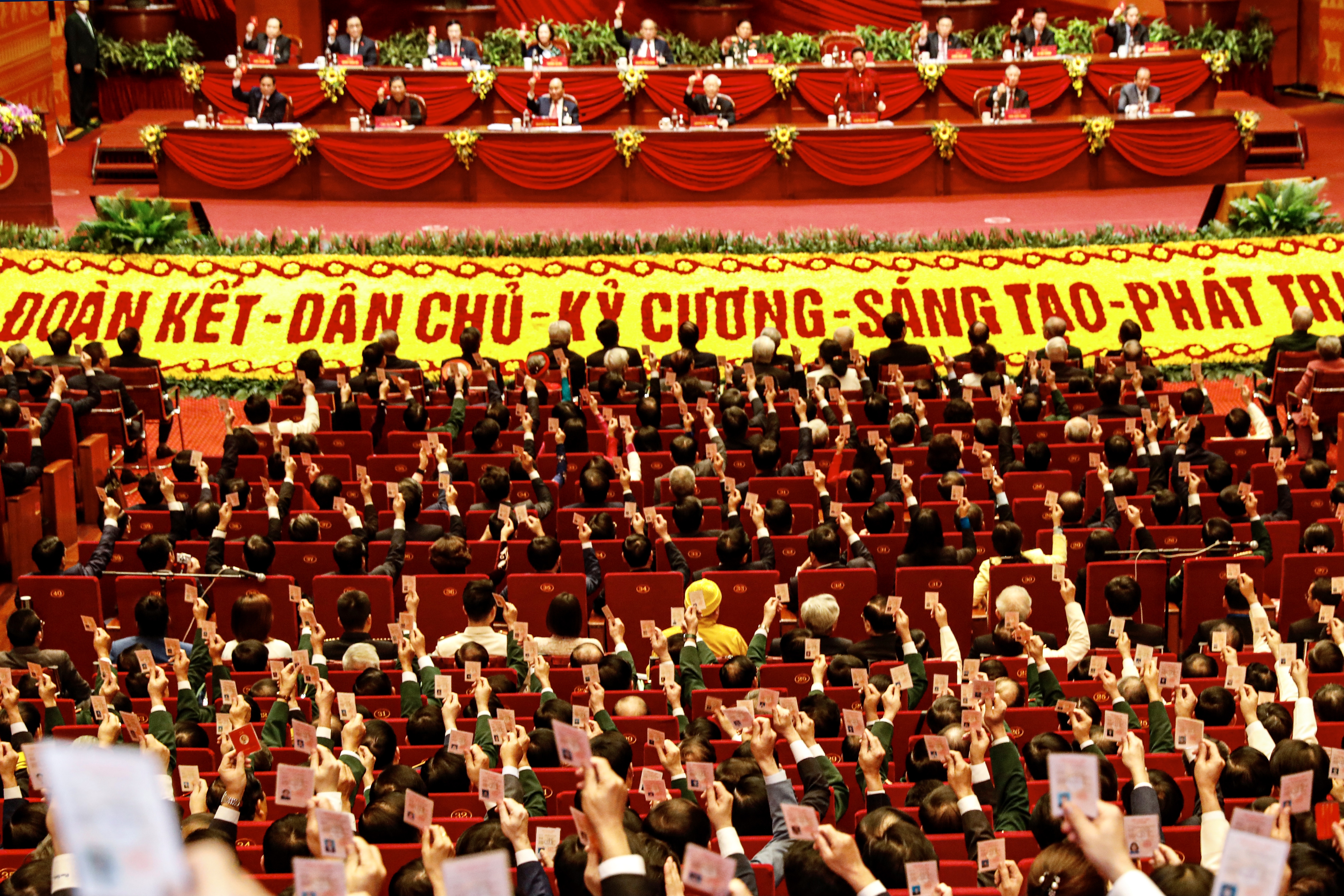 Các đại biểu tham dự Đại hội XIII đã nhất trí thông qua Nghị quyết Đại hội đại biểu toàn quốc lần thứ XIII.