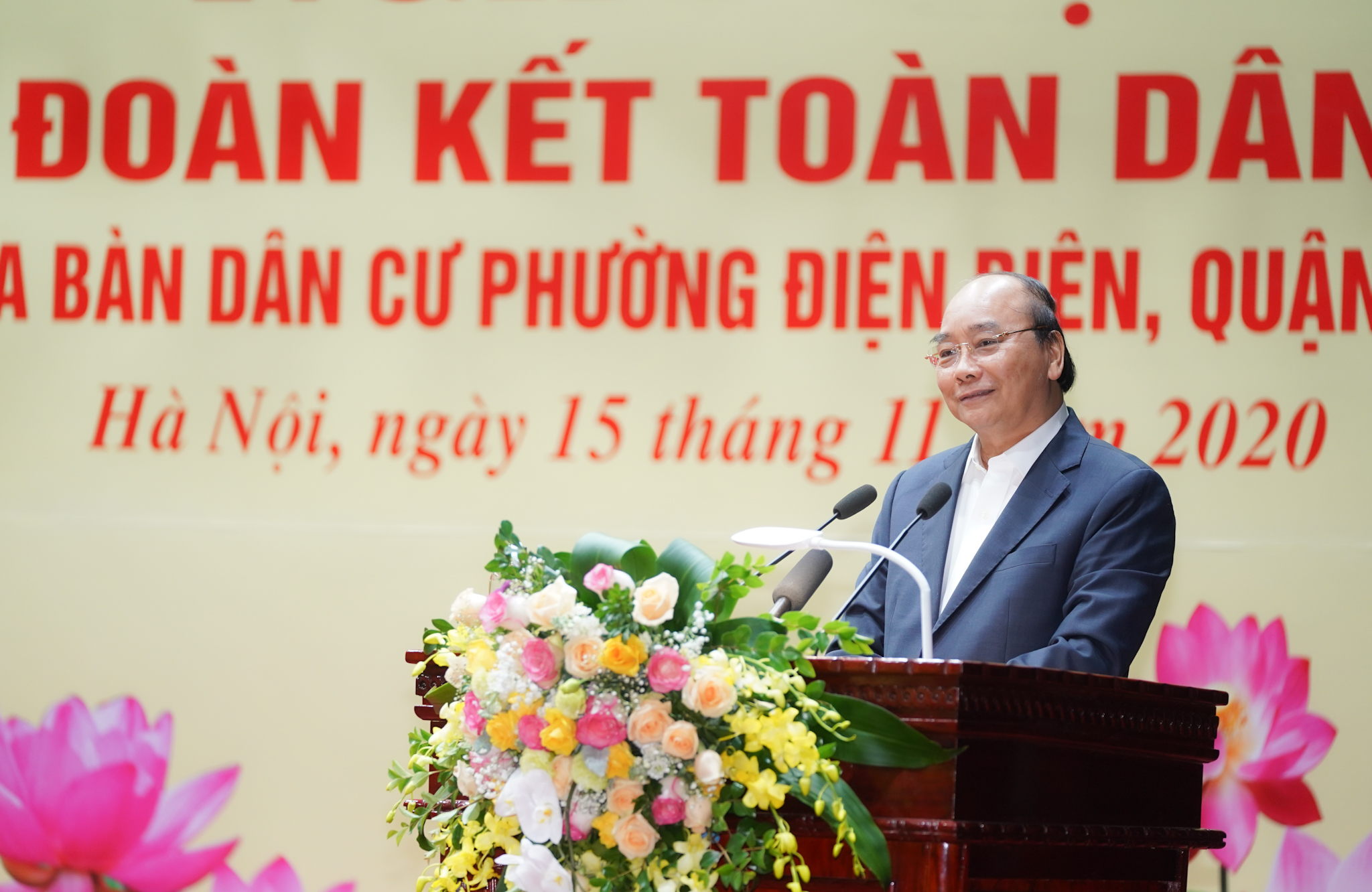 Tối 15/11, dự Ngày hội Đại đoàn kết toàn dân tộc khu dân cư phường Điện Biên, Hà Nội, Thủ tướng Nguyễn Xuân Phúc nhấn mạnh 2 điều quan trọng cần làm là đoàn kết và khát vọng phát triển.