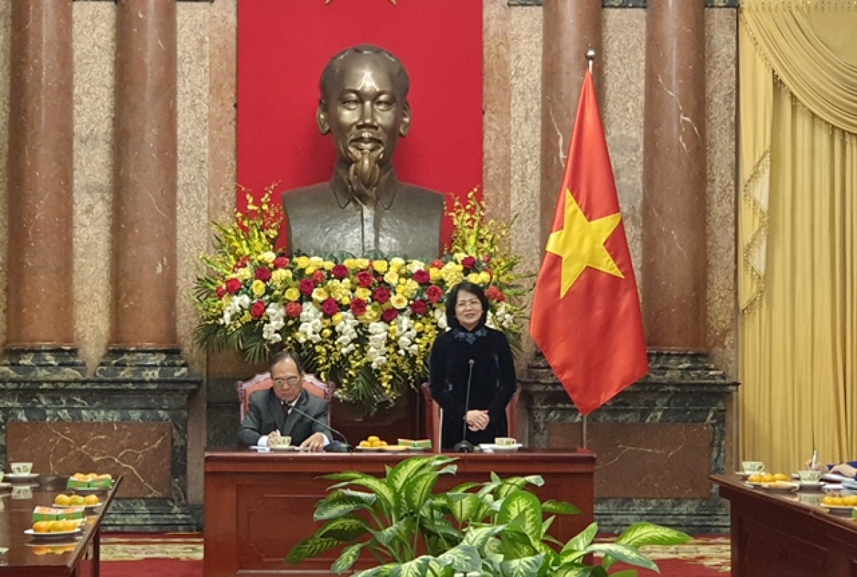 Chiều 10/11, tại Phủ Phủ Chủ tịch, Phó Chủ tịch nước Đặng Thị Ngọc Thịnh tiếp đoàn người có công tỉnh Tiền Giang nhân dịp đoàn ra thăm Thủ đô Hà Nội, viếng Lăng Chủ tịch Hồ Chí Minh.