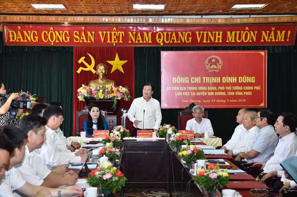 Ngày 5/9, Phó Thủ tướng Trịnh Đình Dũng cùng đoàn công tác đã đến thăm và làm việc với Đảng bộ, chính quyền huyện Tam Dương, tỉnh Vĩnh Phúc.